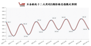 本期(2022/10/14)“中国成都五金机电指数”(以下简称“五金机电指数”)价格总指数收于108.09点与上期相比下跌0.30个百分点,与去年同期108.22相比下跌0.13个百分点。