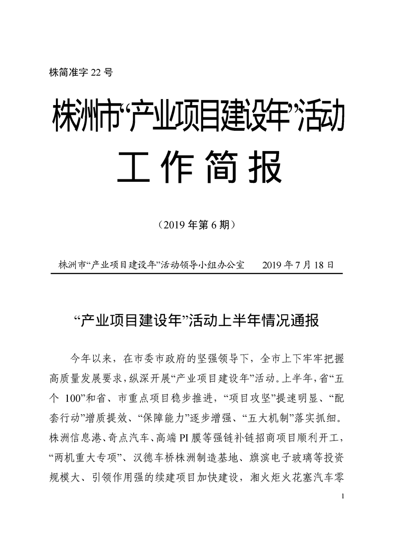“产业项目建设年”活动工作简报(第六期)半年情况通报