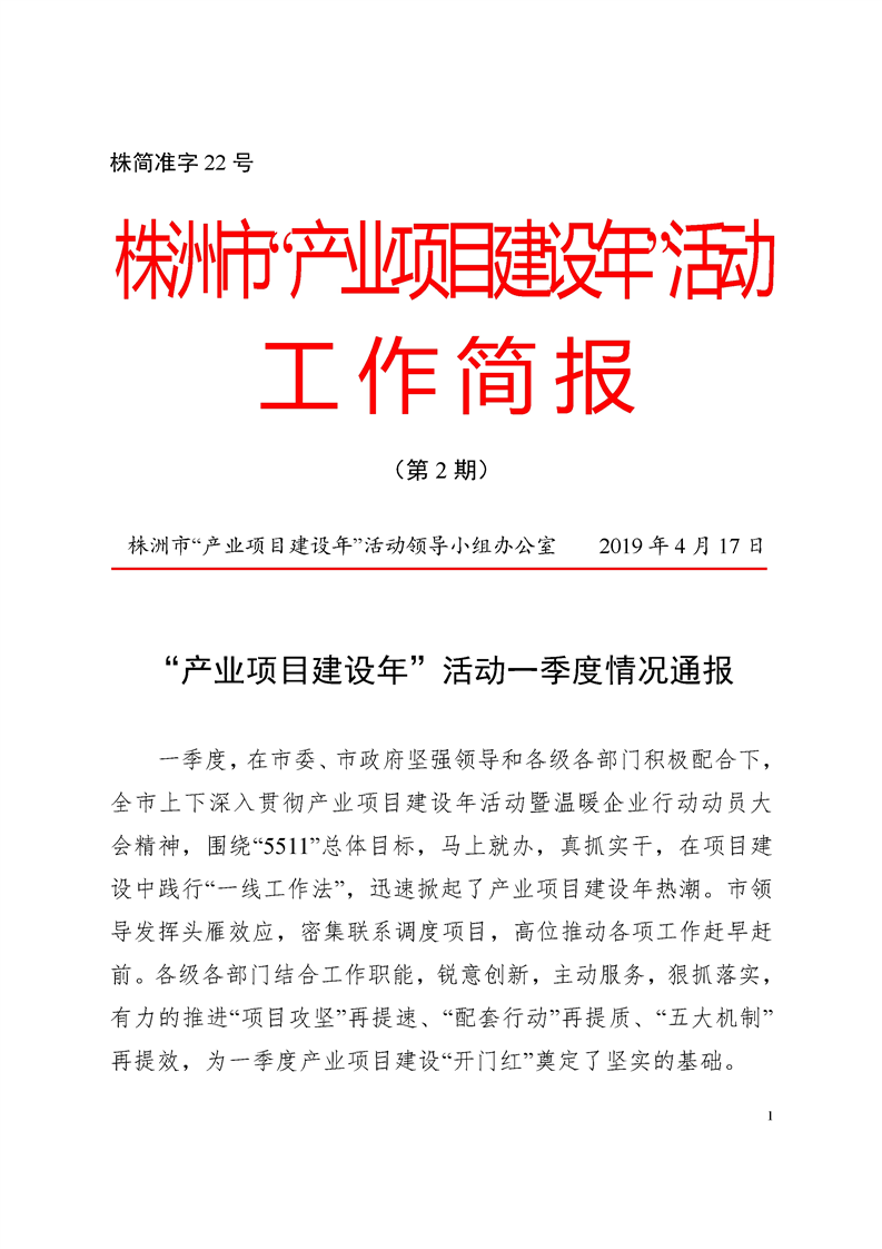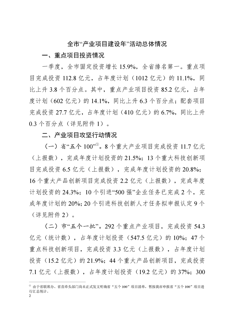 “产业项目建设年活动”工作简报(第二期) 一季度情况通报
