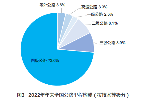 年末全国国道里程37.95万公里,省道里程39.36万公里。农村公路里程453.14万公里,其中县道里程69.96万公里、乡道里程124.32万公里、村道里程258.86万公里。