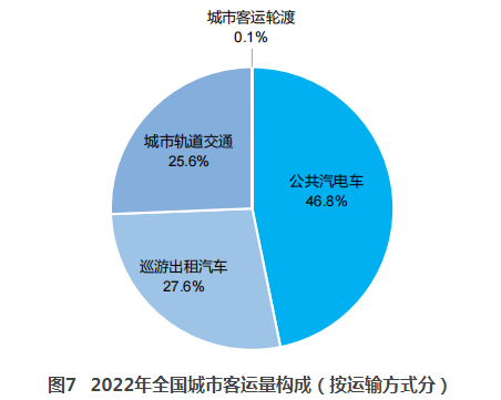 全年完成城市客运量755.11亿人,比上年下降24.0%。其中,公共汽电车客运量353.37亿人、下降27.8%,城市轨道交通客运量193.09亿人、下降18.6%,巡游出租汽车客运量208.20亿人、下降22.0%,城市客运轮渡客运量0.45亿人、下降11.7%。