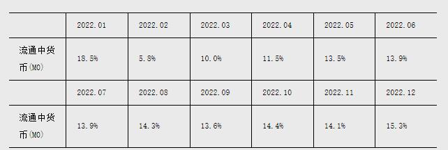 注4:自2022年12月起,“流通中货币(M0)”含流通中数字人民币。12月末流通中数字人民币余额为136.1亿元。修订后,2022年各月末M1、M2增速无明显变化。修订后M0增速如下: