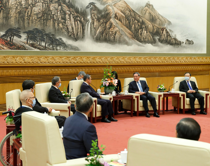 7月5日下午,国务院总理李强在北京人民大会堂会见日本国际贸易促进协会会长河野洋平率领的访华团。新华社记者 丁林 摄