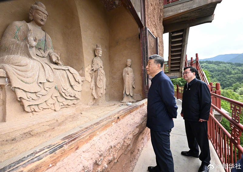10日下午至11日上午,习近平总书记先后来到陕西省宝鸡市和甘肃省天水市考察调研。在宝鸡市,习近平考察了宝鸡青铜器博物院、渭河生态公园,了解当地加强文物保护利用和开展渭河生态保护治理等情况。在天水市,习近平考察了伏羲庙、麦积区南山花牛苹果基地、麦积山石窟,了解当地推动文化遗产保护传承、发展特色现代山地果业等情况。(文字记者:张晓松、朱基钗;摄影记者:鞠鹏、谢环驰、王晔、燕雁、申宏、翟健岚)