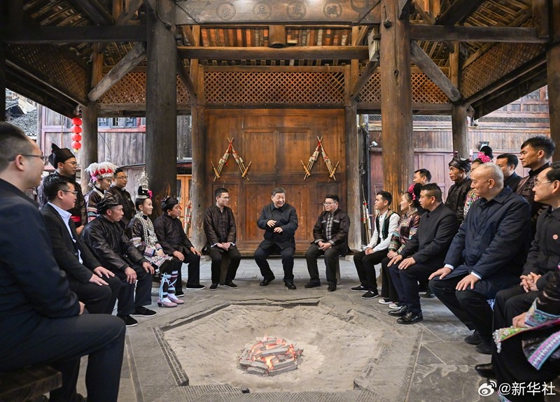 17日下午,习近平总书记来到贵州黎平县肇兴侗寨考察。在村寨的信团鼓楼,习近平同村干部和村民代表围坐在火塘边共话乡村全面振兴。大家你一言、我一语,争相向总书记讲述近年来的村寨变化和幸福生活。习近平高兴地说,从你们的讲述、你们的神情可以看出,村寨这些年欣欣向荣。现在旅游是一个很大的产业,乡村旅游如火如荼,民族地区要保留自己的特色文化,在文旅融合中更加彰显它的光彩。祝你们的日子越过越红火!(文字记者:朱基钗;摄影记者:谢环驰、燕雁、申宏、翟健岚)