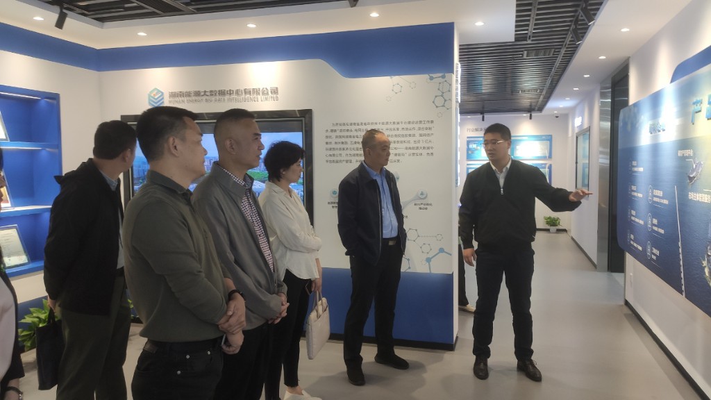 调研组一行先后参观了湖南能源大数据中心公司数字化展厅,观看了能源监测分析中心建设成果的展示,并听取了公司湖南能源大数据智慧平台、碳资产管理平台等平台建设的最新情况汇报。