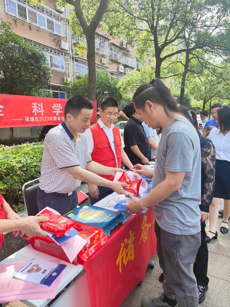 5月26日上午,株洲市发改委在石子头社区(电力小区)开展了全市粮食和物资储备科技活动周宣传活动。本次宣传活动的主题为“储备安全,科学减损”。市发改委党组副书记、副主任刘和球参加了现场活动,仙竹米业、望鑫米业、金饭碗米业等本地粮油企业进行了优质粮油产品展销。通过活动,积极宣传展示粮食和物资储备领域最新科技创新成果。