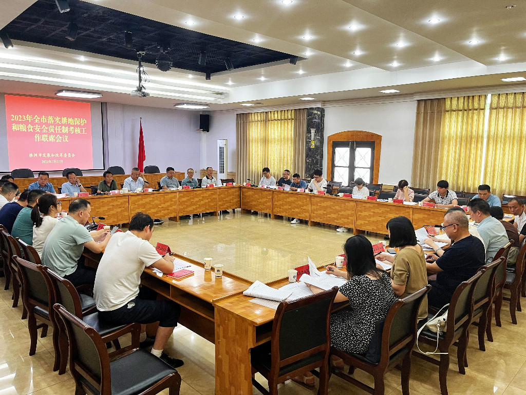 为认真落实省粮安考核办下发《关于认真开展2023年度落实耕地保护和粮食安全责任制考核工作的通知》文件精神,株洲市发改委迅速行动,第一时间对文件认真学习研究,并于7月27日下午,组织召开了2023年全市落实耕地保护和粮食安全责任制考核工作联席会议。
