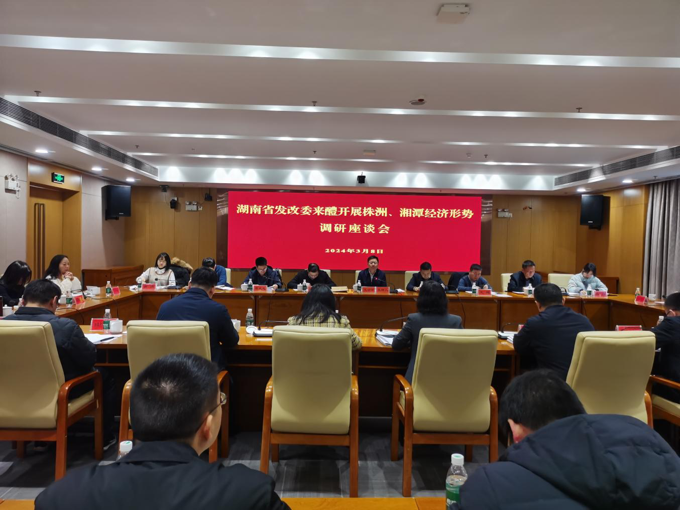 2024年3月6日至8日,省发改委党组成员、副主任文会中带领投资处、基础处、财信处、督导处等处室到湘潭市、株洲市调研经济形势。