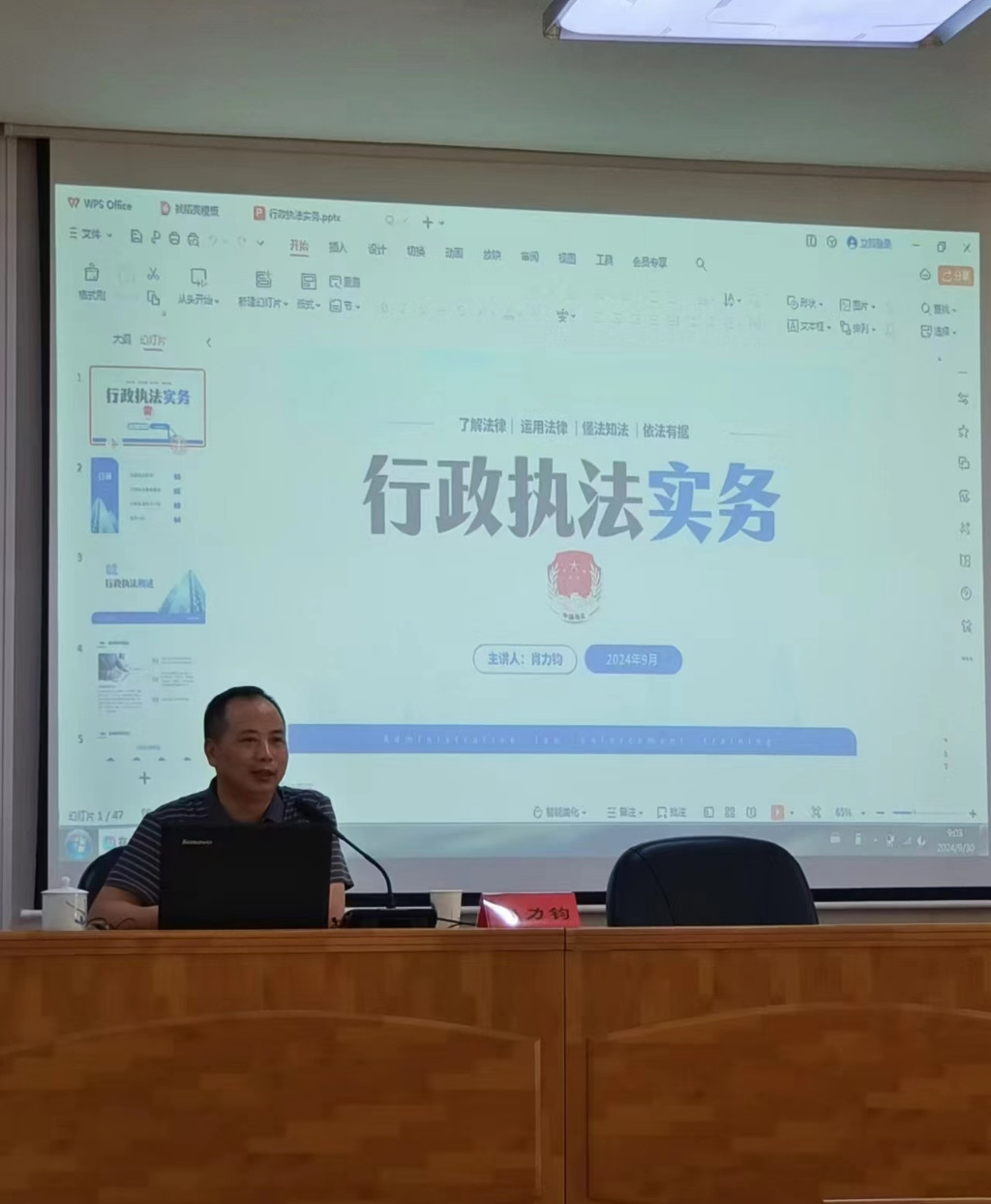 为全面深入贯彻党的二十届三中全会精神,加强法治教育,切实提高机关单位人员法治素养,推进法治机关建设。根据市委全面依法治市统一安排,市发改委(市国动办)组织开展依法行政专题培训,会议由市发改委(市国动办)党组副书记、副主任叶晖主持。此次培训邀请株洲市八五普法讲师团成员,株洲市司法局党组副书记、副局长肖力钧作为主讲人,为全委干部职工授课。