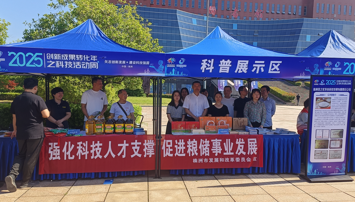 为深入贯彻落实国家粮食安全战略,推动粮食和物资储备科技创新成果的广泛应用,提升全民科学素质和爱粮节粮意识,5月30日,株洲市发改委联合城区发改局在湖南工业大学开展了2025年全市粮食和物资储备科技活动周宣传活动。本次宣传活动的主题为“强化科技人才支撑 促进粮储事业发展”。市发改委党组成员、副主任王桂雄参加了现场活动,金饭碗、金湘江和香之优等本地粮油科技型企业进行了优质粮油产品展销。通过活动,积极宣传展示粮食和物资储备领域最新科技创新成果。