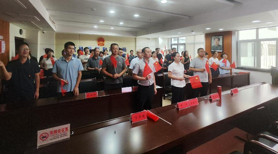 会议最后,为庆祝中华人民共和国成立75周年,全体干部职工摇动红旗、齐唱国歌,共同祝福祖国繁荣昌盛,祝福攸县明天更好。