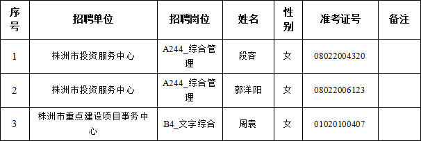株洲市发展和改革委员会所属事业单位2023年公开招聘(选调)拟聘用人员名单公示