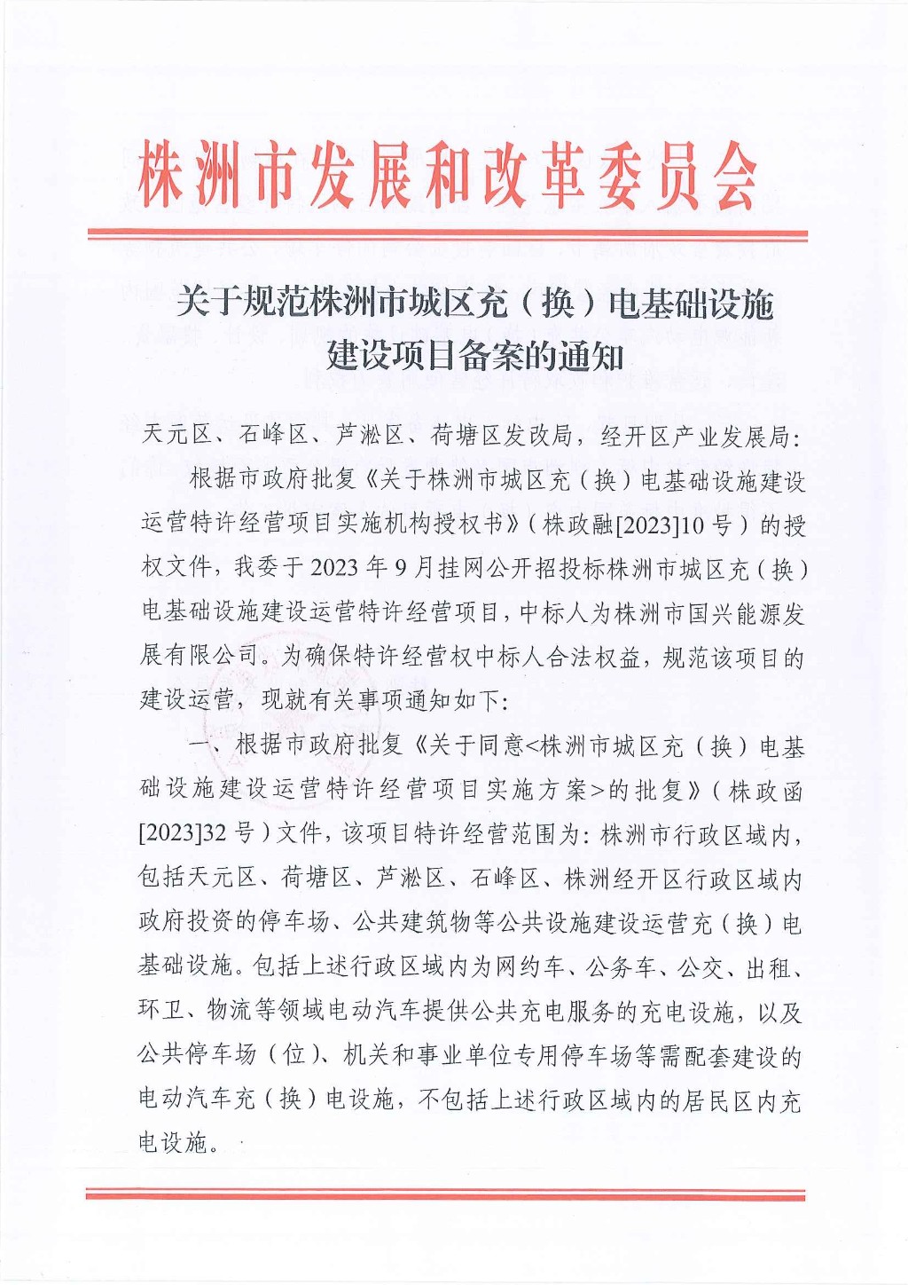 关于规范株洲市城区充(换)电基础设施建设项目备案的通知