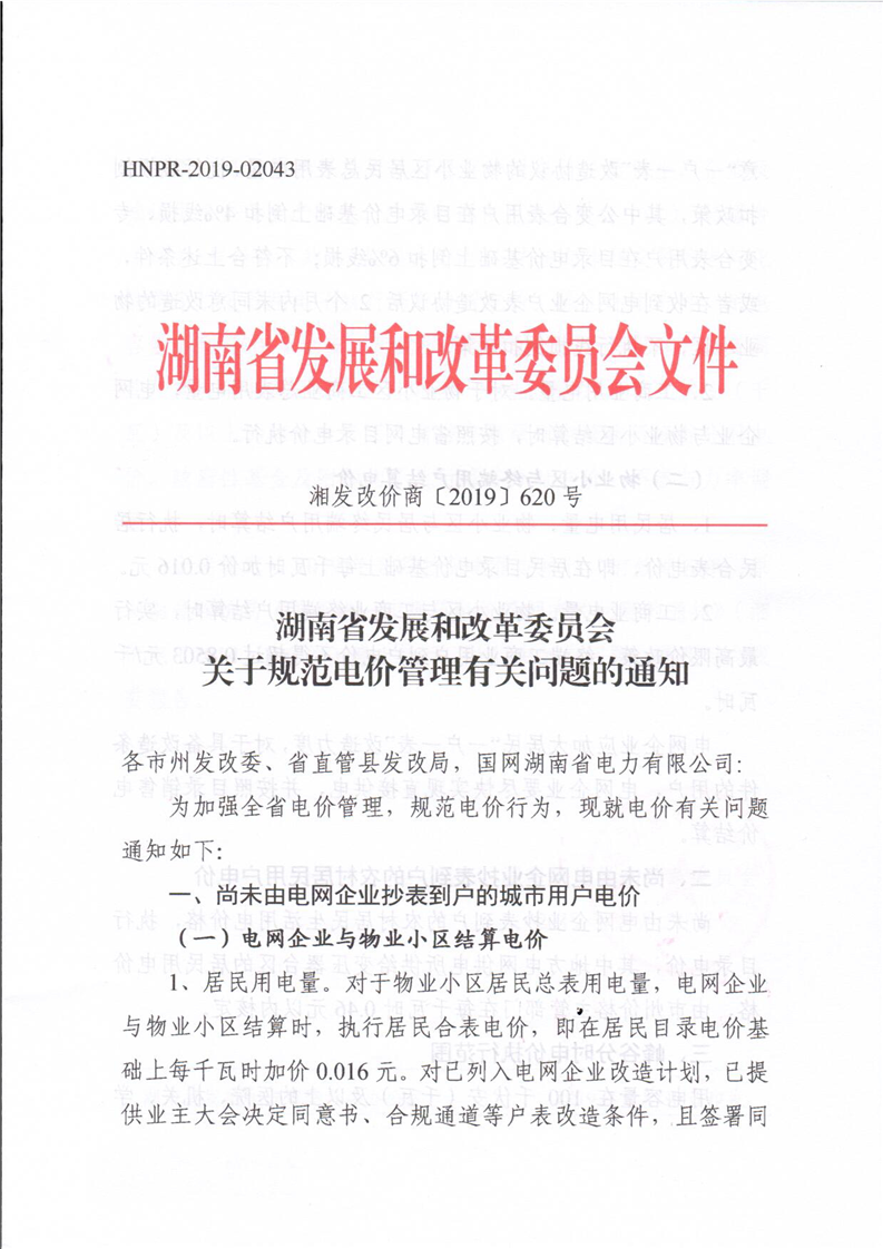 附件:《湖南省发展和改革委员会关于规范电价管理有关问题的通知》(湘发改价商〔2019〕620号)