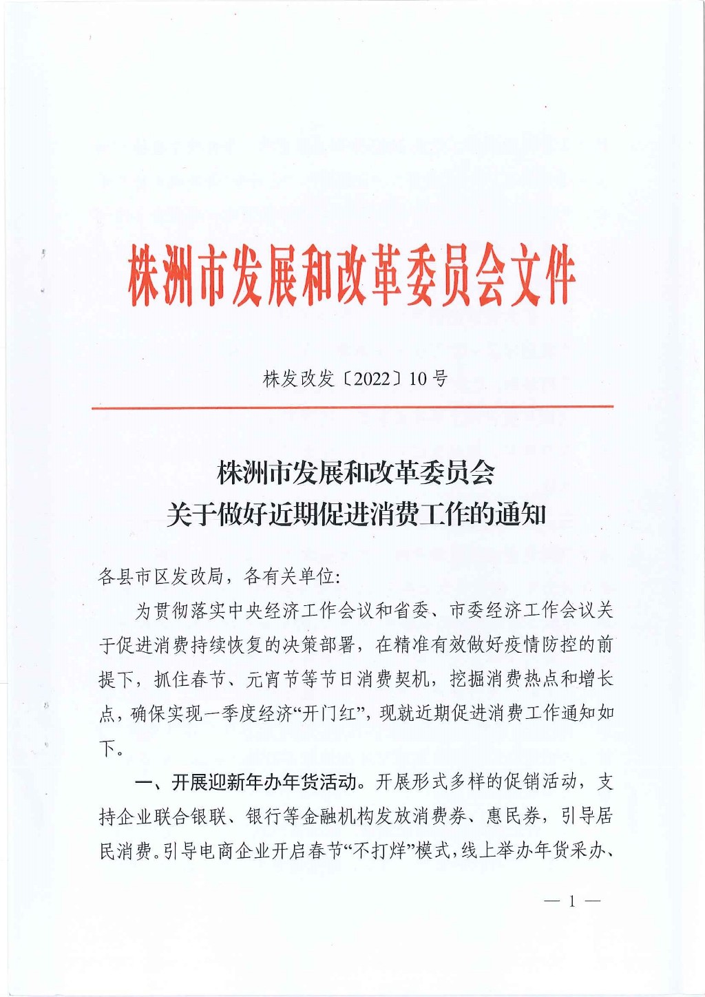 关于做好近期促进消费工作的通知(株发改发〔2022〕10号)