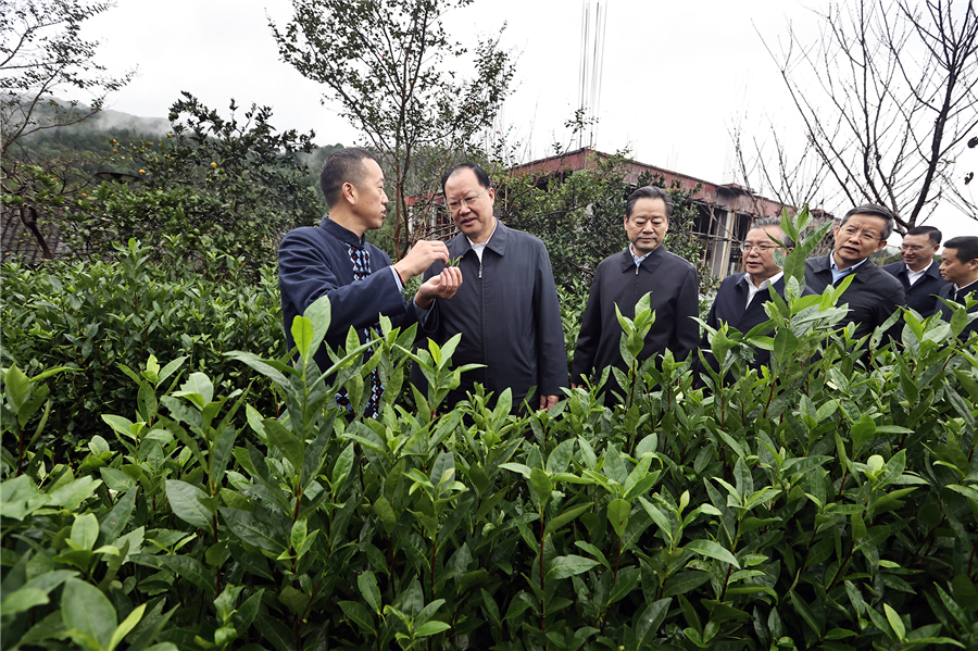 古丈拥有20.5万亩茶叶资源,14万亩油茶资源,其中全县80%的农业收入来自茶叶,“两茶”是当地的靓丽名片。毛伟明一行走进湖南东方天润公司油茶加工车间,了解产品加工、市场销售等情况。他强调要发挥龙头企业的示范带动作用,守牢食品安全底线,着力推动油茶产业规模化种植、标准化生产、品牌化经营,让油茶结出“富民果”。古丈青竹山茶业有限公司立足茶旅融合,采取“公司+基地+农户”的产业化经营模式,带动周边农户305户,实现人均年增收2000元。毛伟明强调,要聚焦品质、品种、品牌,擦亮“古丈毛尖”的金字招牌,挖掘茶文化、赋能茶科技、提升茶产业,拓展“茶+美食”“茶+旅游”“茶+康养”等新业态,让茶区变景区、茶园变公园、茶山变金山。