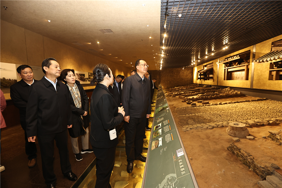 10月7日,毛伟明在永顺县老司城博物馆调研。
