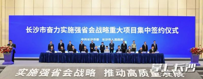 抓重大项目,提振的是信心、凝聚的是力量、赢得的是未来。长沙市立足自身优势,吸引和落户高质量发展项目,已经成为“强省会”的发力方向和全市上下的强烈共识。 作为长沙市贯彻落实“三高四新”战略定位和使命任务、大力实施“强省会”战略的具体行动,此次集中签约活动中,投资总额1200亿元的48个项目串珠成链,将为“强省会”提供强劲动力。其中,投资额过50亿元项目6个,“三类500强”项目9个,制造业项目占总数的52%,具有投资规模大、项目质量高、产业结构优等特点,将为长沙经济社会发展注入新动能。 签约活动现场,长沙市人民政府与国网湖南省电力有限公司、泰康保险集团股份有限公司签署战略合作协议;湖南湘江新区、湖南自贸试验区长沙片区等园区、区县(市)分别与科大讯飞、新奥集团、360、惠科、欣旺达等企业达成合作。