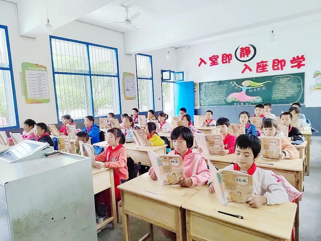 油圳小学教室里干净整洁,孩子们认真阅读。受访单位供图