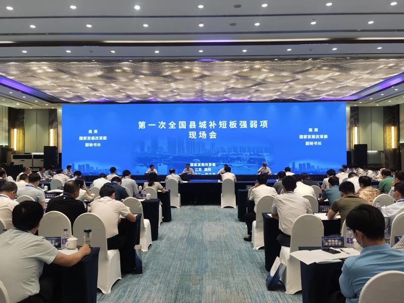 为贯彻落实党的十九届五中全会《建议》和国家“十四五”规划《纲要》有关重要部署,推动落实县城补短板强弱项“1+N+X”系列政策性文件,2021年6月23日,国家发展改革委在江苏常州溧阳召开第一次全国县城补短板强弱项现场会,国家发展改革委副秘书长高杲出席会议并讲话。江苏、福建、山东、河北、湖北、安徽、河南、四川、贵州、内蒙古、吉林等11省份发展改革委和县城建设示范地区人民政府负责同志,以及有关中央企业同志参加会议。