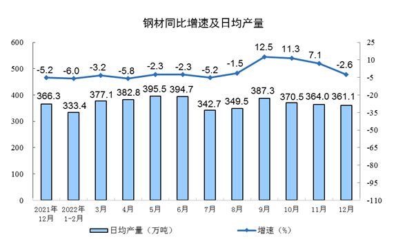 12月份,规模以上工业增加值同比实际增长1.3%(增加值增速均为扣除价格因素的实际增长率)。从环比看,12月份,规模以上工业增加值比上月增长0.06%。2022年,规模以上工业增加值比上年增长3.6%。