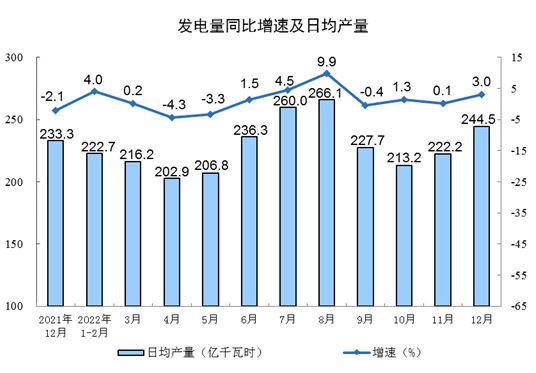 分产品看,12月份,617种产品中有207种产品产量同比增长。钢材11193万吨,同比下降2.6%;水泥16844万吨,下降12.3%;十种有色金属595万吨,增长7.3%;乙烯265万吨,增长4.6%;汽车248.8万辆,下降16.7%,其中新能源汽车81.0万辆,增长55.5%;发电量7579亿千瓦时,增长3.0%;原油加工量5988万吨,增长2.5%。