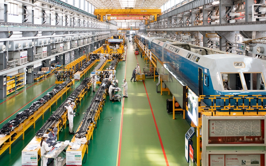 2022年5月17日,中车株洲电力机车有限公司,工人在机车事业部生产车间忙碌。 湖南日报全媒体记者 辜鹏博 摄