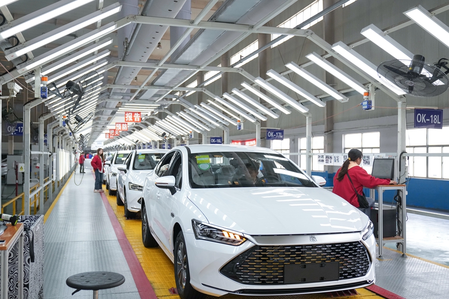 比亚迪长沙基地总装车间,工人在新能源汽车生产线上忙碌。(资料图片) 湖南日报全媒体记者 辜鹏博 摄