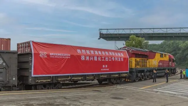 ▲湘粤非铁海联运株洲兴隆化工出口专列正式发车。资料图