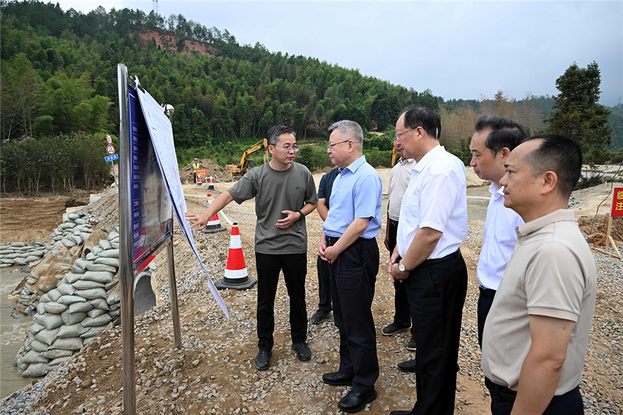 8月29日,沈晓明、毛伟明一行来到杨洞水库供水管网坪石桥段抢修点,听取供水基础设施恢复情况介绍。