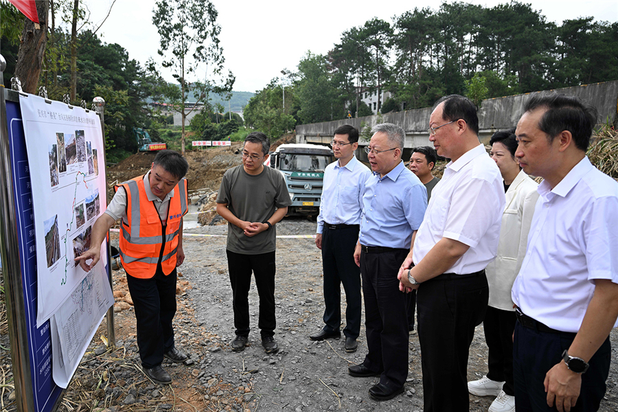 在“格美”台风引发的特大暴雨山洪地质灾害中,兴宁镇百嘉洞村有1400多名群众受灾,房屋、基础设施、农作物等严重受损。来到村里,沈晓明一行察看群众过渡安置、河段疏浚等情况,并入户走访受灾群众,仔细询问房屋鉴定、卫生消杀、水电入户等情况,指出要做好安置点服务保障工作,用心用情保障安置群众基本生活,分类施策抓好基础设施恢复重建,加快恢复灾区正常生产生活秩序。在兴宁镇枫枧村的灾后重建搬迁安置规划选址地,沈晓明一行仔细察看地形地貌,了解地质勘察、规划建设、安置户型等情况,强调要在前期全面排查地质灾害点的基础上,进一步提高划定重点防范区的精准度,有序推进易地搬迁安置,确保安置项目建设质量。