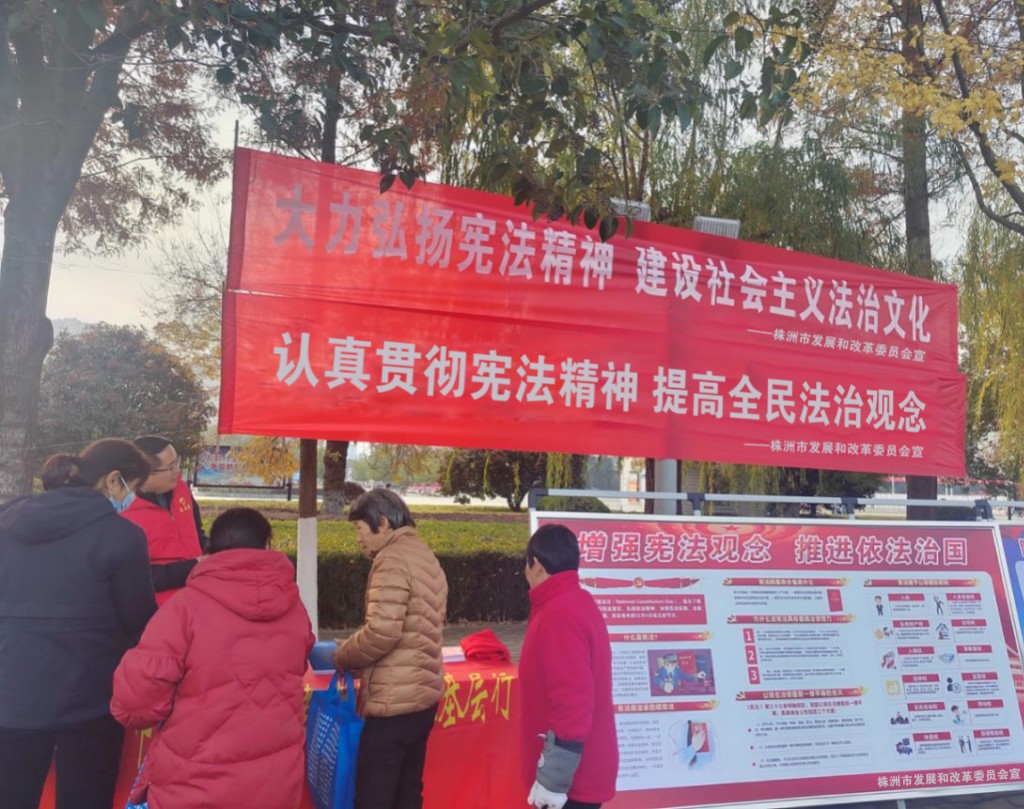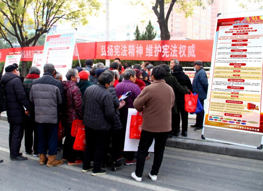 为深入学习贯彻党的二十大精神,大力弘扬宪法精神,推动进一步全面深化改革,在第十一个“国家宪法日”来临之际,市发改委于12月4日在家润多广场前坪组织开展“宪法宣传日”主题普法活动,通过形式多样的宣传方式,让宪法走进群众生活,营造尊法学法守法用法的浓厚氛围。